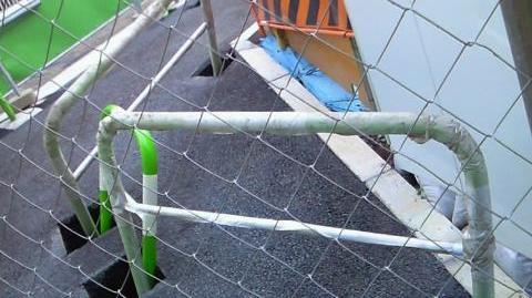 ※堀坂下の写真 すみ切りの部分を ガードレールで完全に閉じようとしています。