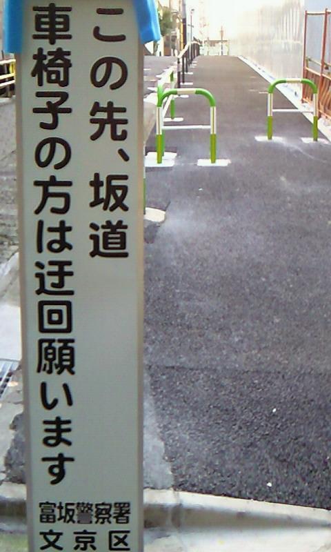 小石川二丁目マンションの無秩序な開発・建築を考える会の支援者の方から 情報をいただきました。 一時停止の標識と歩行者専用道路の標識が 同じ向きで仲良く並んでいます。 歩行者専用道路の標識は T字路から堀坂を上ろうとする車両に見せるものです。 ところが、写真のとおり、堀坂を下りてT字路に入ろうとする車両 に見せており 180°向きが変わっています。 堀坂は区道です。 区道管理者(文京区土木部管理課)には 近隣住民の安全を考えていただきたいです。 文京区長 成澤 廣修 様 堀坂、六角坂の周辺住民は 静謐で整然とした小石川の町並みに ふさわしいマンション建設を求めています。
