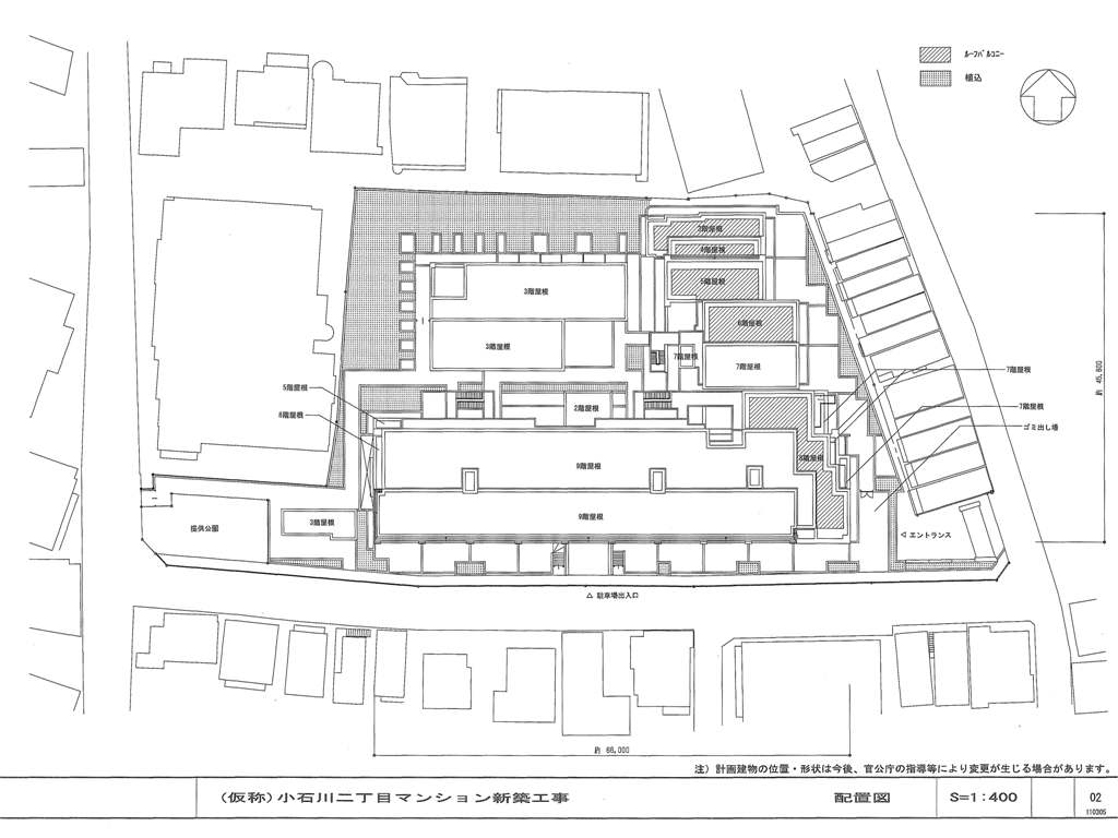 小石川二丁目マンション事業者(NIPPO 神鋼)が 2011年3月5日付で配布した図面では 車寄せが設けられていません! マンション購入者も困るはずです。 堀坂、六角坂の周辺住民は設計変更を求めています。 荷物搬入車やごみ収集車が急峻な堀坂へ出入りして近隣への迷惑を起こす可能性があります。車両出入口やゴミ置き場の配置が問題を起こさないよう配慮し、配慮の内容を明示することを求めます。