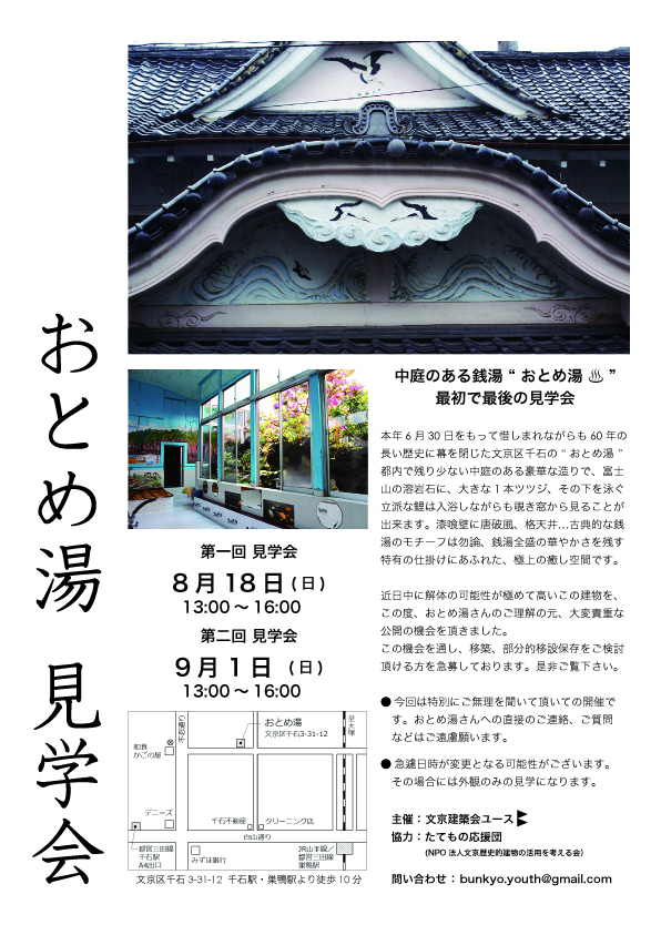 お結びの会 交流会の案内をいただきました。 「今 文京区でおきている」 いろいろな問題について 日 時: 2014年9月11日(木)18時30分~20時30分(開場:18時) 場 所: アトラスタワー茗荷谷 3階 地域集会室 参 加 費: 無 料 < 内 容 > 1. 湯立坂脇マンション・文化財(銅御殿) 2. 関口の目白坂計画 3. 堀坂・六角坂の開発 4. 春日・後楽園駅前地区再開発 5. 小石川植物園道路拡張問題 6. 本駒込6丁目マンション建設問題 7. 区政と町会について 8. 澤蔵司稲荷裏の問題 9. 春日駅エレベーター 10. 大和郷の納骨堂建設計画のその後 11. 文京区政の問題点 ― みんなで考えよう