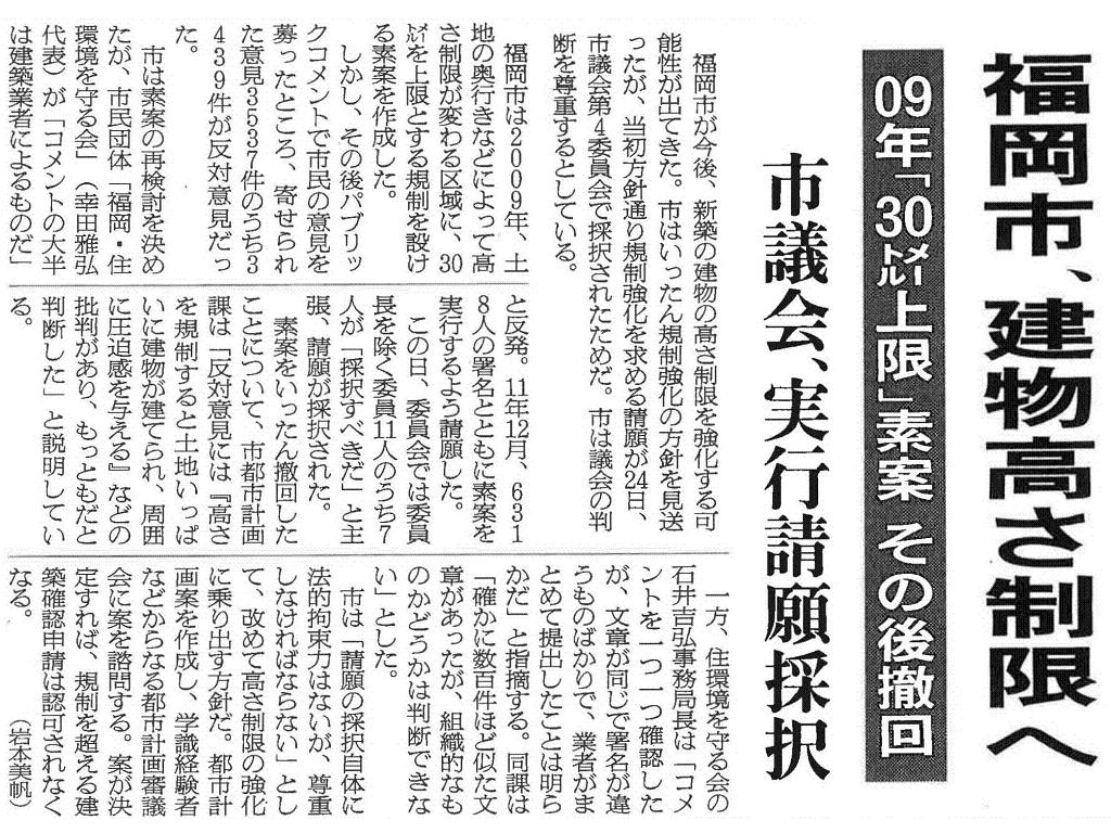 ※ www.city.bunkyo.lg.jp から引用 概要 区では、建築物の高さを適切に誘導するため、絶対高さ制限を定める高度地区の指定を検討しています。 その中で、既存不適格建築物の建替えや大規模敷地などにおいて、一定の条件を満たす建築計画については高さ制限を緩和することとしており、このたびその特例の認定等に関する基準(素案)を作成しました。この基準について、ご意見を募集します。 意見の募集期間 平成24年4月16日(月)から平成24年5月15日(火)まで 資料 ・特例の認定等に関する基準(素案) (PDF 161KB) ・高度地区計画書(案) (PDF 224KB) ・【参考資料】概要 (PDF 371KB) 意見の提出方法 (1)郵送 〒112-8555文京区春日1-16-21 文京区都市計画部計画調整課宛 (2)電子メール 電子メールでのご意見はこちらから (3)ファクシミリ 03-5803-1358 文京区都市計画部計画調整課宛 (4)持参 文京区都市計画部計画調整課(文京シビックセンター18階南)に、直接お持ちください。 資料の閲覧場所 ホームページ上に掲載するとともに、次の場所で閲覧できます。 ・都市計画部計画調整課(シビックセンター18階) ・行政情報センター(シビックセンター2階) ・区立図書館・図書室(11か所) ・地域活動センター(9か所) いただいたご意見は、整理したうえで個人情報を除き公表する予定です。 なお、いただいたご意見に対しては個別の回答は行いませんので、あらかじめご了承ください。 お問合せ先 都市計画部計画調整課 TEL(5803)1239 FAX(5803)1358