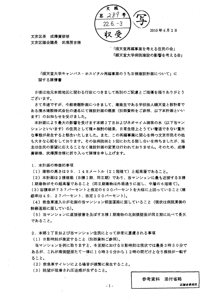 総合設計制度による 高さ100mの超高層ビル建築計画に対して 説明会開催、計画変更を訴える、署名活動がされているそうです。 設計者は清水建設です。