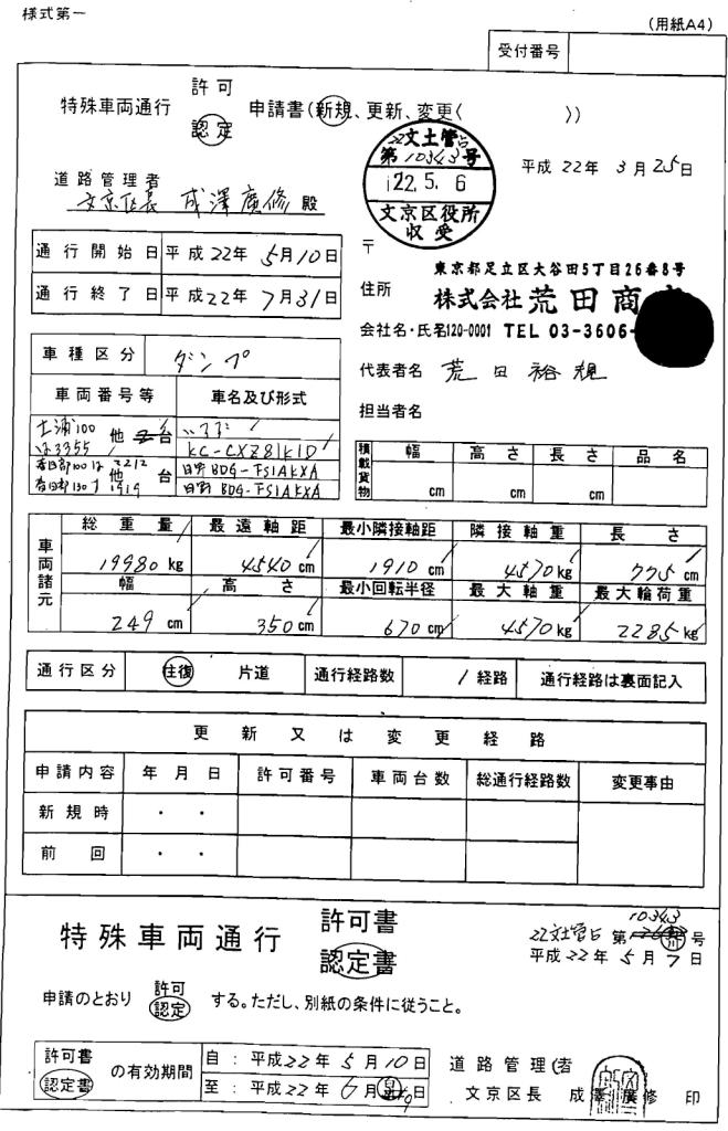 一般的制限値(車両幅2.5m)を超えない車両であっても、道路の構造に応じて通行できる車両の幅等は制限されます。この制限を超える車両をやむを得ず通行させようとするときには、道路管理者に通行の認定を受ける必要があります。