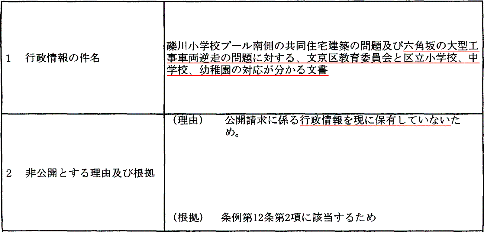 文京区教育委員会は 六角坂の大型工事車両通行の問題を 学校の問題として対応していないということでしょうか。