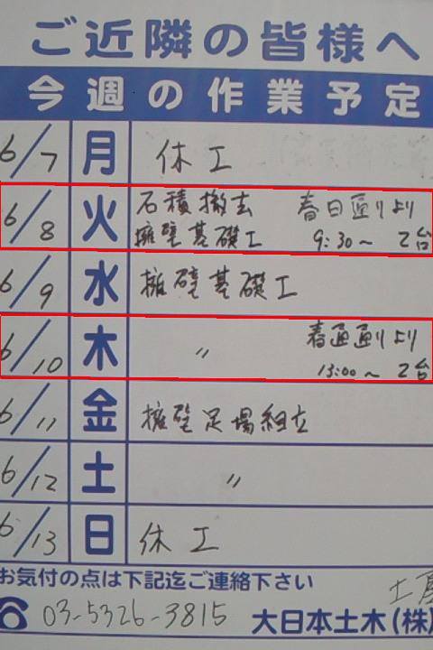 本日の工事予定表