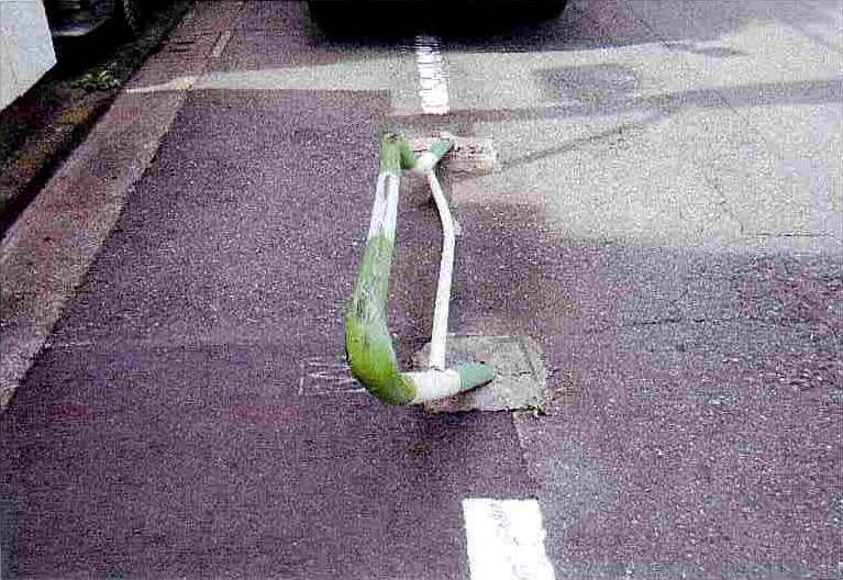 文京区長が平成22年7月6日付「22文土管第377号」をもって公開した、 六角坂のガードレール損傷事故の写真です。 当初、文京区長は、種々の理由をつけて、 ガードレール損傷事故の情報を公開しないようにしていました。 文京区の情報公開制度には、かなり問題があるようです。