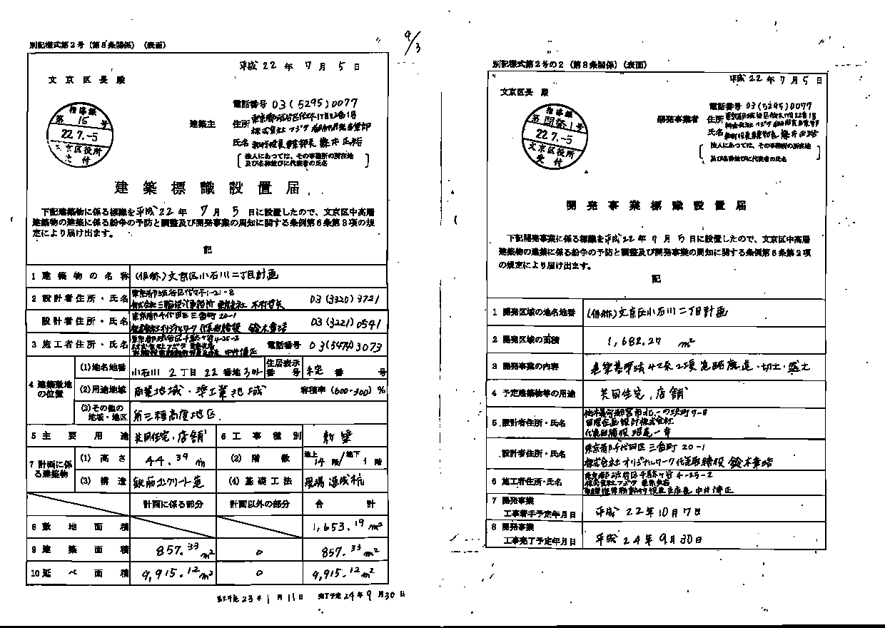 フジタ「(仮称)文京区小石川二丁目計画」に伴う