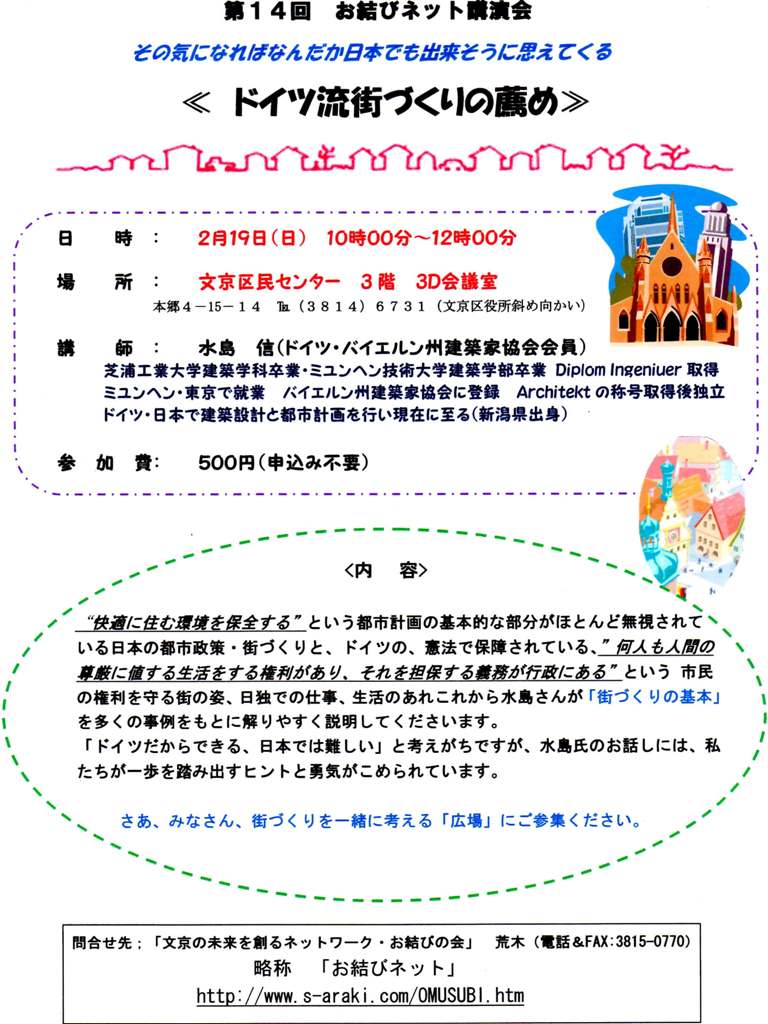 第14回≪お結びネット≫講演会の案内をいただきました。