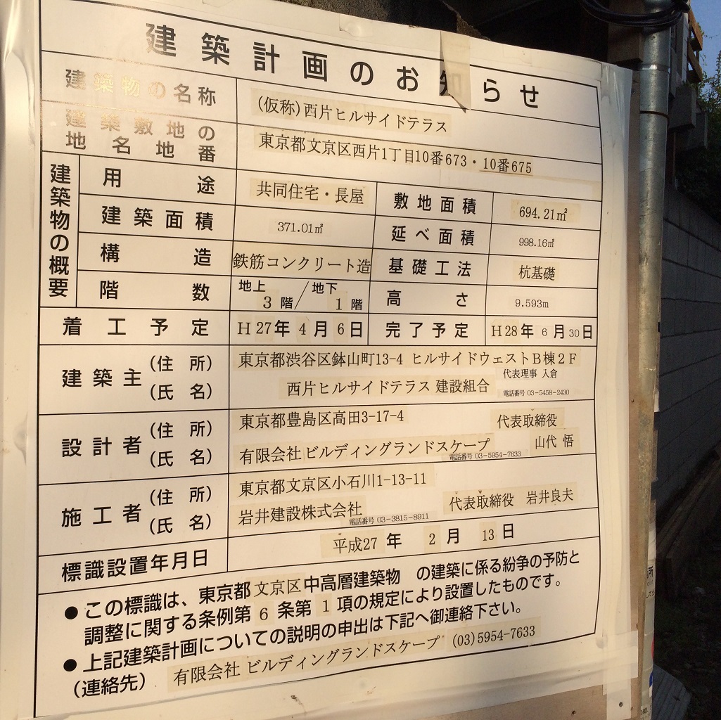 小石川二丁目マンションの無秩序な開発・建築を考える会から お知らせがありました。
